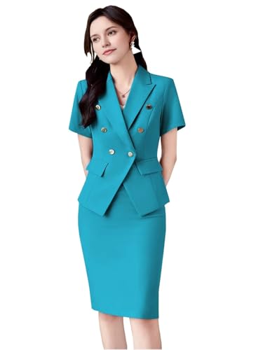Women's Suit 2 PC Blazer Suit Short Sleeve Slim Fit Formal Suit Double Breasted Skirt Suit Fashion Summer Office Suit